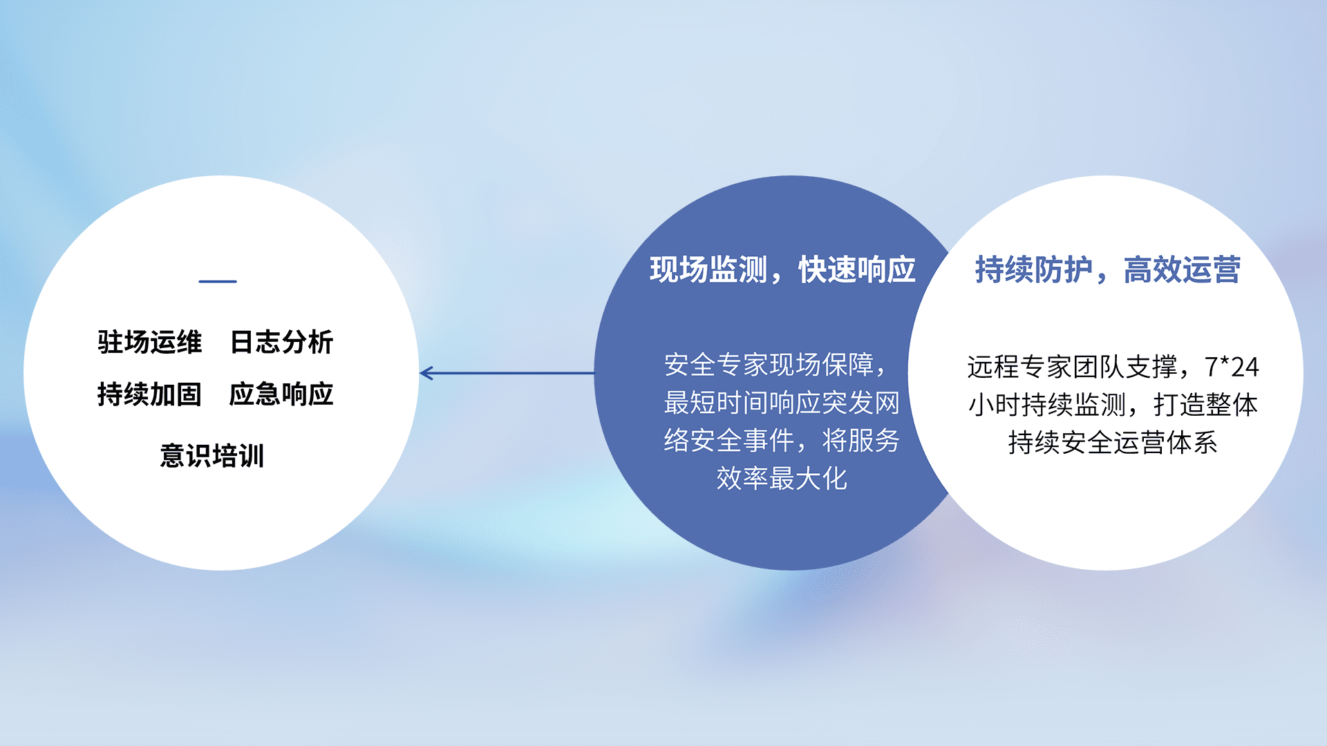 7X24小时持续监测安全事件,保持安全策略有效性,降低资产脆弱性风险,,精准拦截黑客攻击,,,,减少被黑客利用的机会,,第一时间遏制,,降低损失。。。
